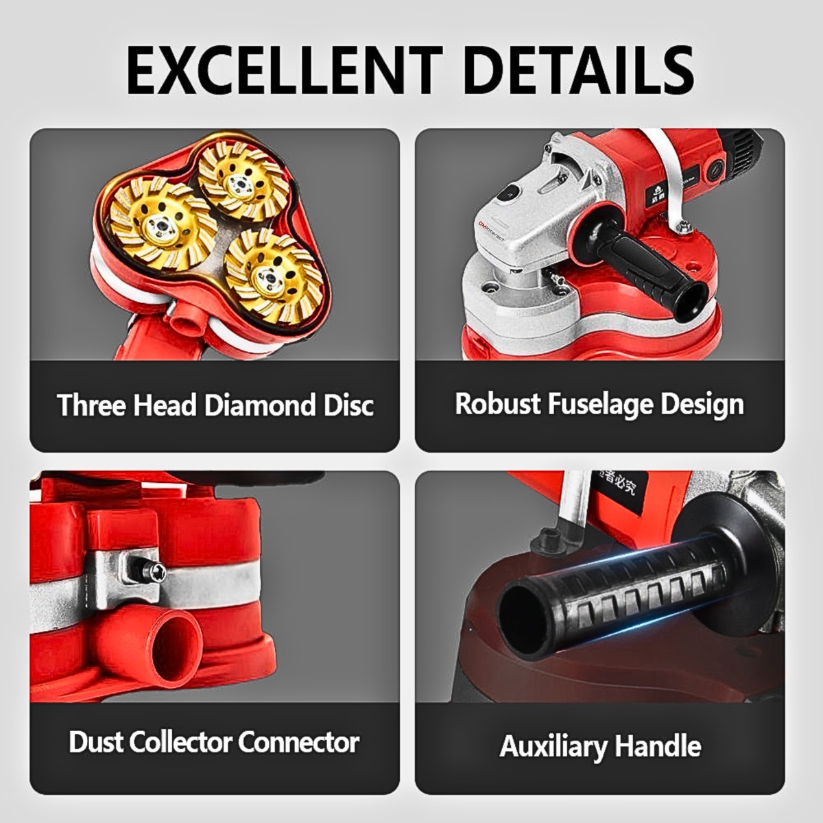 Compatible with various grinding discs for customized surface finishes.