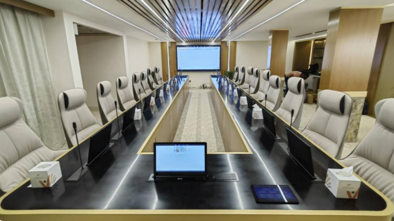 DM-ML17 retractable monitor is designed as advanced hiding equipment for a video conference system.