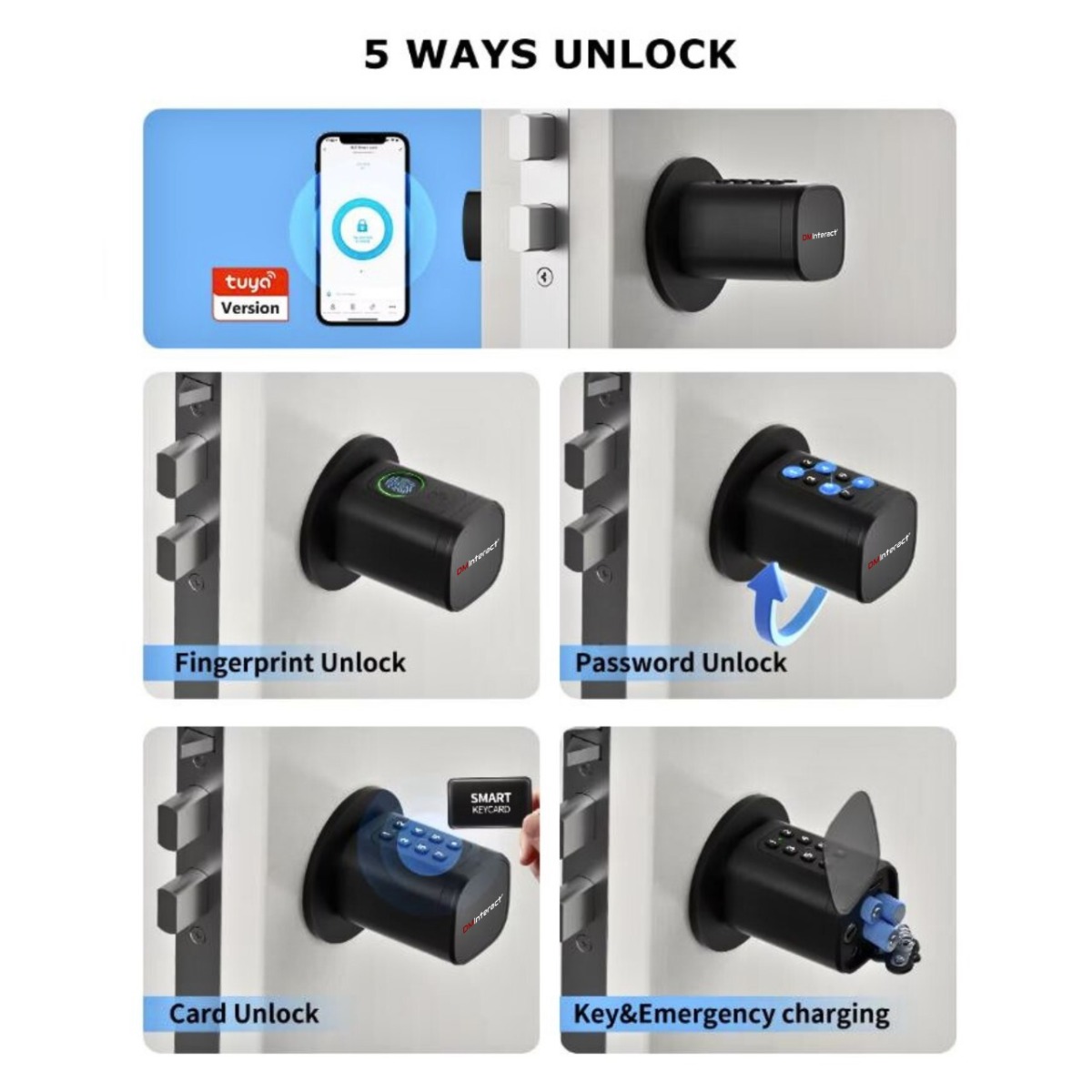 Canada Office: 801 Dundas Street East, Unit #D6, Mississauga, Ontario, L4Y 4G9 Phone: +1 (416) 451-1868 | +1 (416) 302-3017DMInteract DM-SDL01 Tuya App Remote Smart Fingerprint Door Lock with Multi-Access Options - Bluetooth, Wi-Fi, Password, Card & Key Unlock for Home, Office, and Hotels