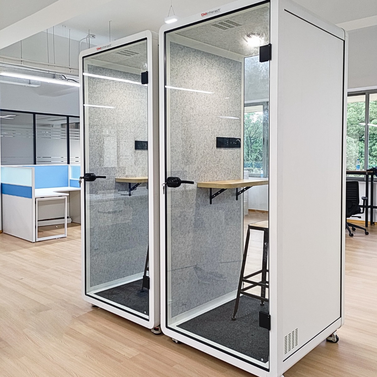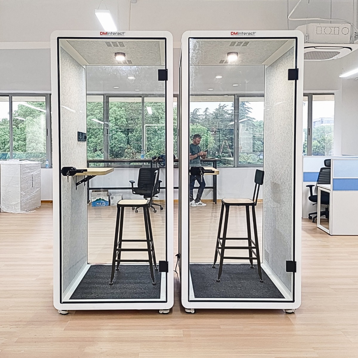 Designed to fit easily within offices, co-working spaces, educational setups, or home studios, DMInteract Solo provides maximum utility with minimal space usage. Its modular structure ensures quick installation and effortless relocation whenever needed, making it a versatile productivity pod for any environment.